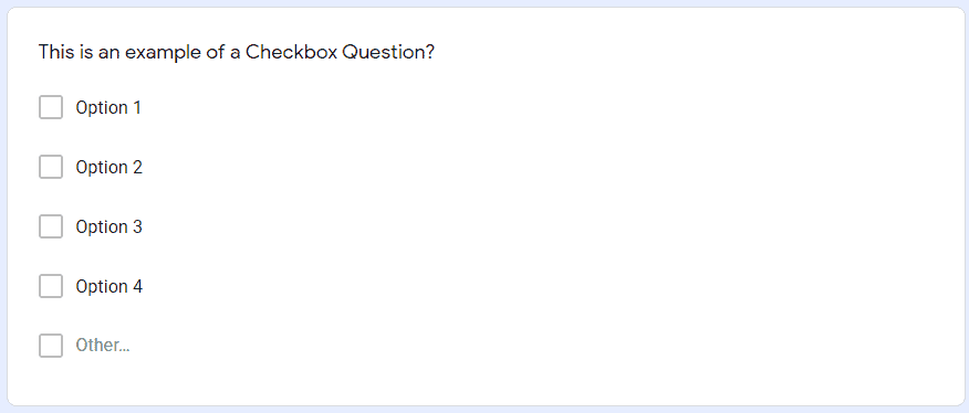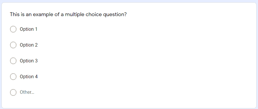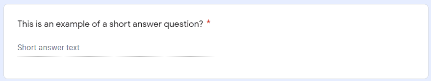Google Forms give you the flexibility to add many different variations of questions. With the default types of questions provided in Google Forms, you should be able to construct an efficient questionnaire/survey that captures whatever information you’re trying to collect in an effective way. The following are the default questions provided from Google Forms: