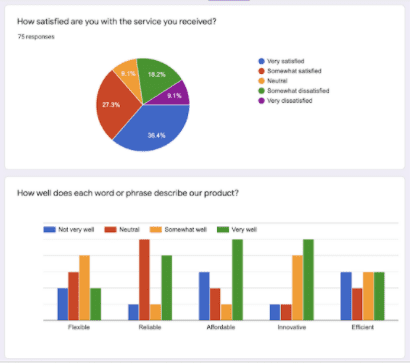 Google Forms is an online software that allows businesses or individuals to create an online questionnaire to collect information from a group of people. Once all individuals have completed the form/survey, the creator has access to the data via spreadsheet and an analytics platform. For personal use Google Forms is free, and for business pricing starts at $6.00 per month for Google Workspace (which includes Google Forms).