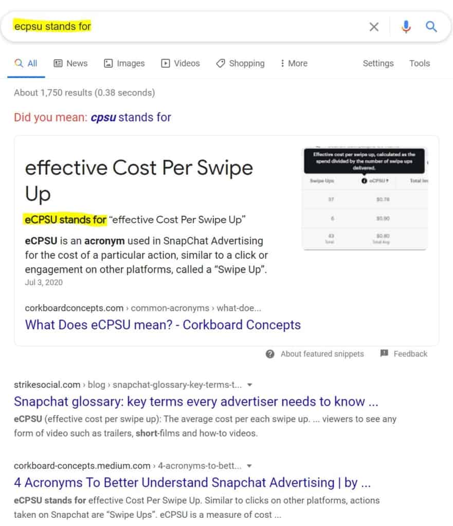 Screenshot of eCPSU in search results.